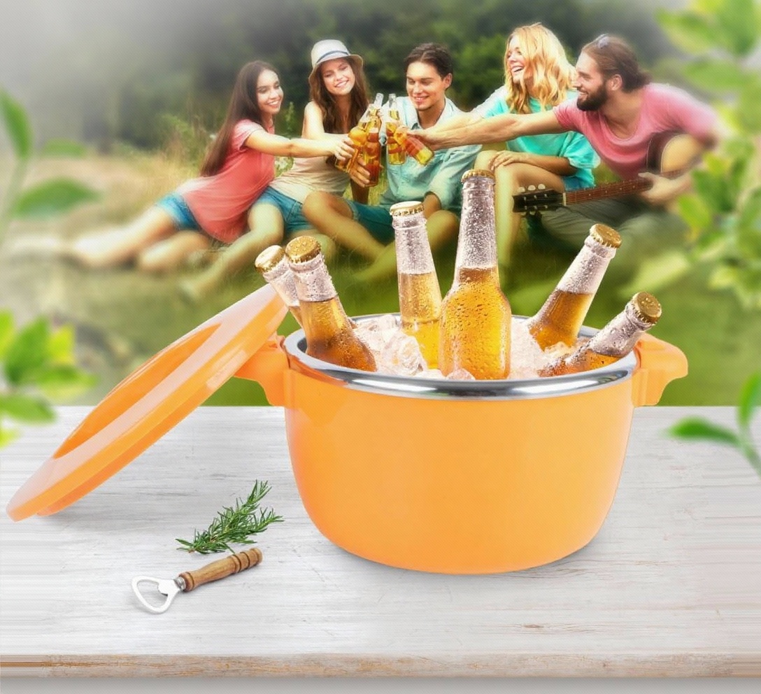 Pentru că este foarte utilă și spațioasă, Caserolă termică 8 litri ne permite să păstrăm și să depozităm alimentele gătite sau pe cele care urmează a fi gătite într-un mediu închis ermetic, protejat. Grosimea materialelor izolatoare și stratul de inox permit menținerea alimentelor calde sau reci aproximativ 3 ore, păstrând savoarea, gustul și prospețimea.