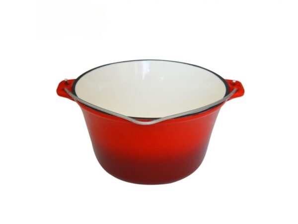 Stratul emailat aplicat pe suprafață protejează vasul împotriva ruginii și elimină nevoia de tratamente speciale cu ulei. Astfel, beneficiați de avantajele fontei – distribuție uniformă a căldurii și menținerea temperaturii – fără procesul de întreținere specific fontei neemailate.