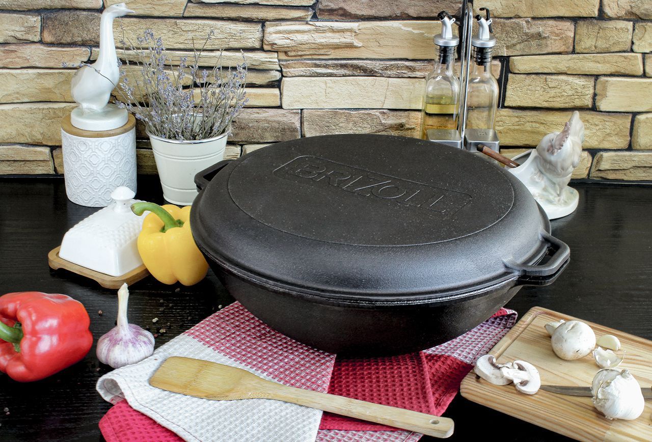 Nu ezita — cumpără acum Ceaun fontă wok capac tigaie grill 8 L
