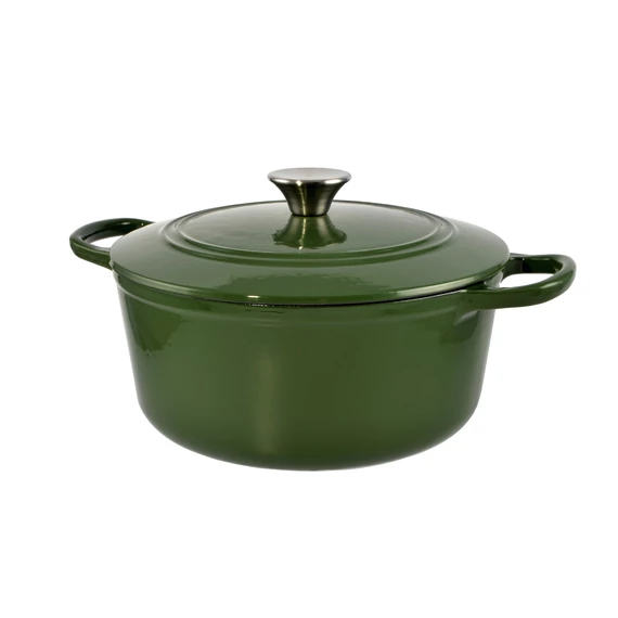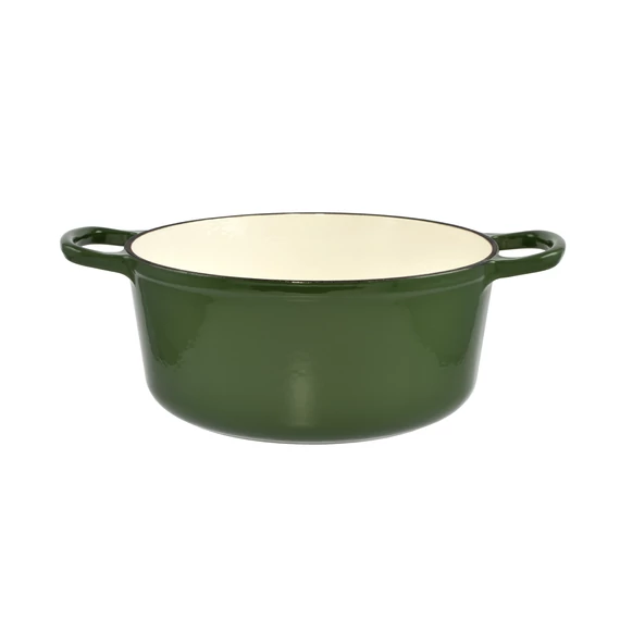 Stratul emailat aplicat pe suprafață protejează vasul împotriva ruginii și elimină nevoia de tratamente speciale cu ulei. Astfel, beneficiați de avantajele fontei – distribuție uniformă a căldurii și menținerea temperaturii – fără procesul de întreținere specific fontei neemailate.