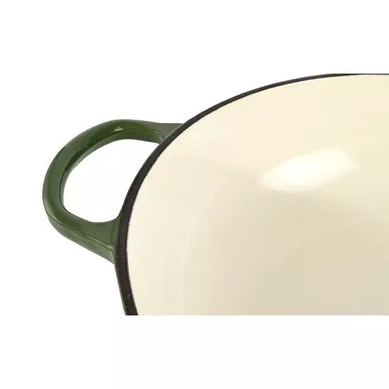 Stratul emailat aplicat pe suprafață protejează vasul împotriva ruginii și elimină nevoia de tratamente speciale cu ulei. Astfel, beneficiați de avantajele fontei – distribuție uniformă a căldurii și menținerea temperaturii – fără procesul de întreținere specific fontei neemailate.