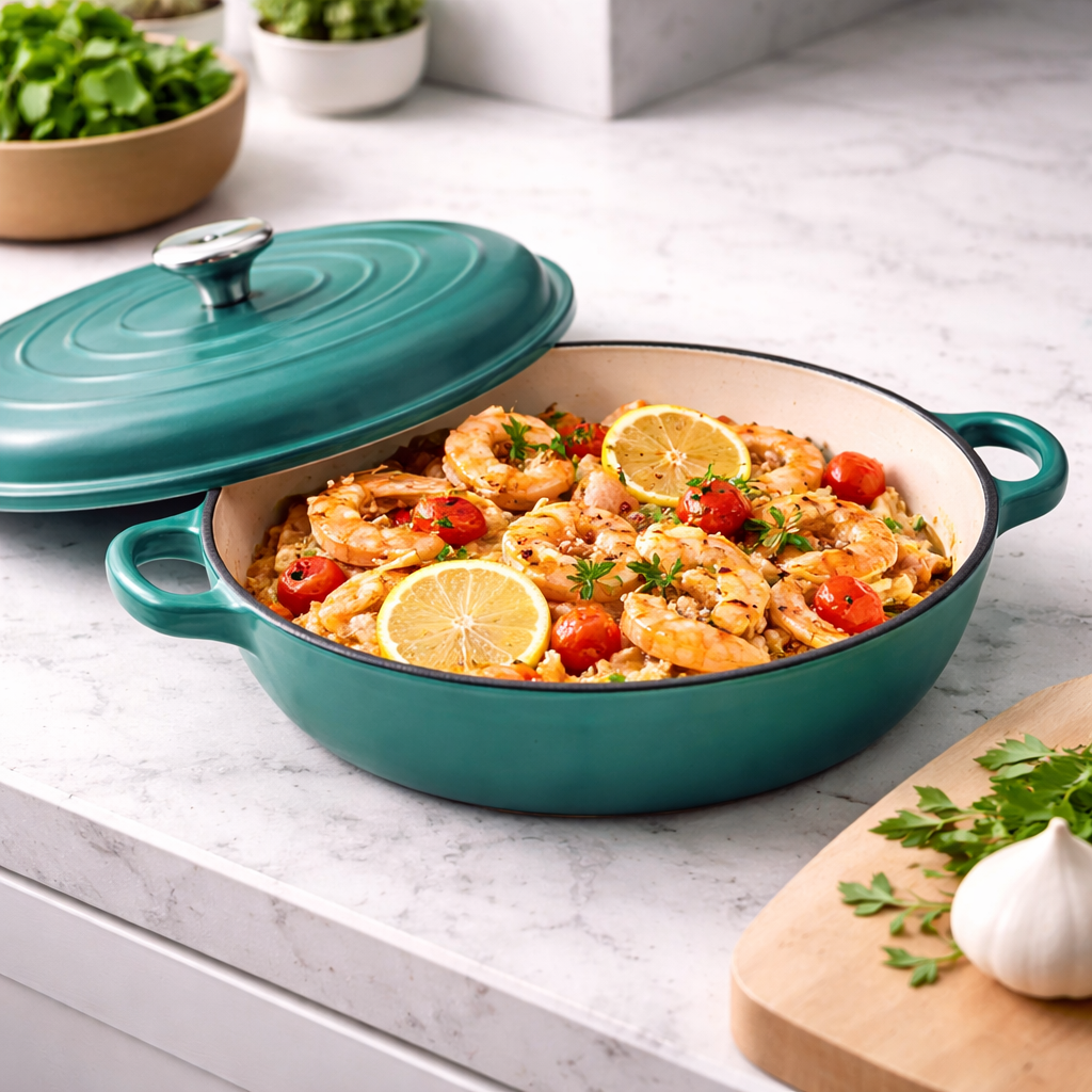Este ideală pentru preparate care necesită gătire lentă și uniformă. Este potrivită pentru tocănițe, fripturi la cuptor, mâncăruri cu sos, supe consistente, sarmale sau preparate tradiționale. Datorită capacității excelente de menținere a temperaturii, mâncarea rămâne caldă mai mult timp după oprirea focului.