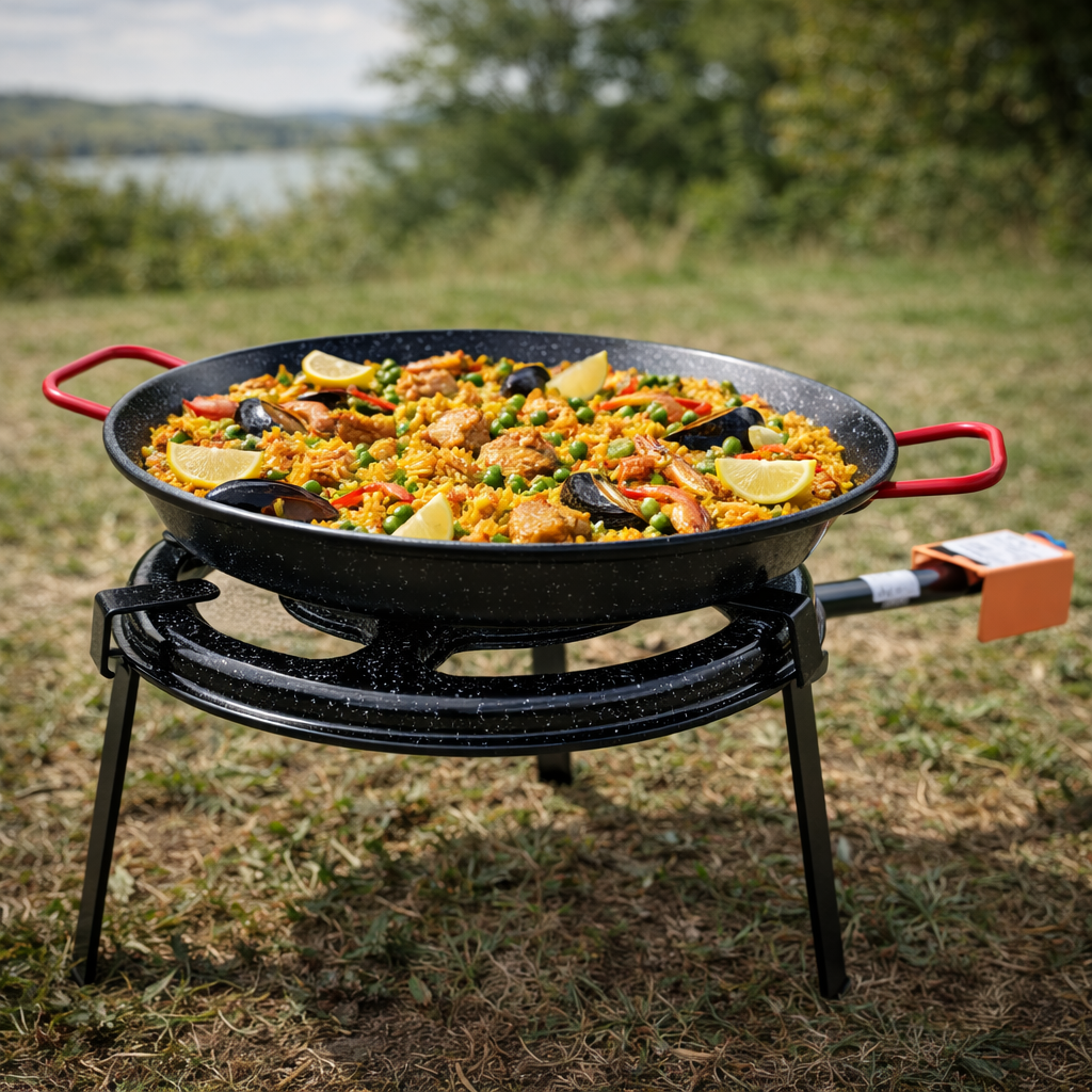 Pentru ca este rapid. Pirostrie gaz paella 30 cm este practic, ușor de utilizat și ideal pentru gătit rapid în aer liber. Se montează în câteva secunde, fără efort, fiind perfect pentru picnic, camping sau grădină.