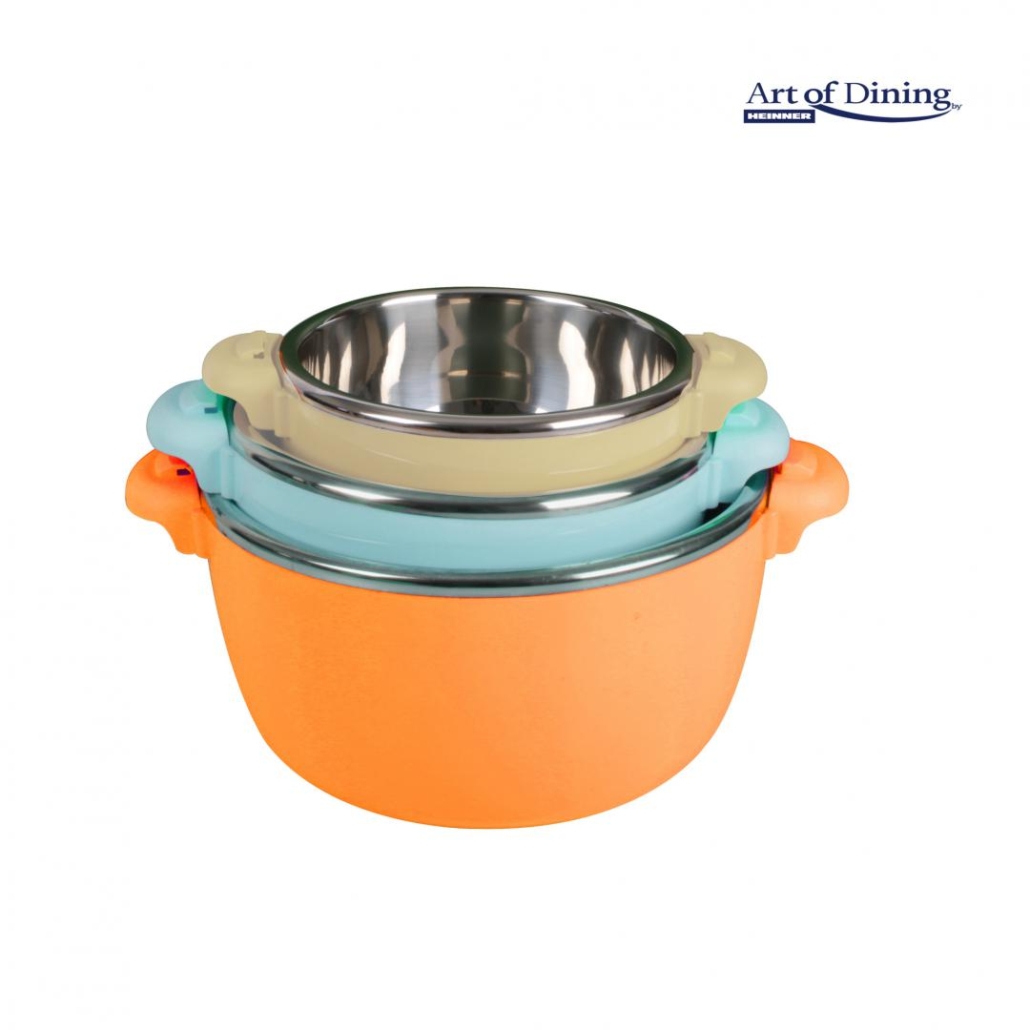 Pentru că sunt foarte utile și spațioase, cele trei capacități ne permit să păstrăm și să depozităm alimentele gătite sau pe cele care urmează a fi gătite într-un mediu închis ermetic, protejat. Grosimea materialelor izolatoare și stratul de inox permit menținerea alimentelor calde sau reci aproximativ 3 ore, păstrând savoarea, gustul și prospețimea.