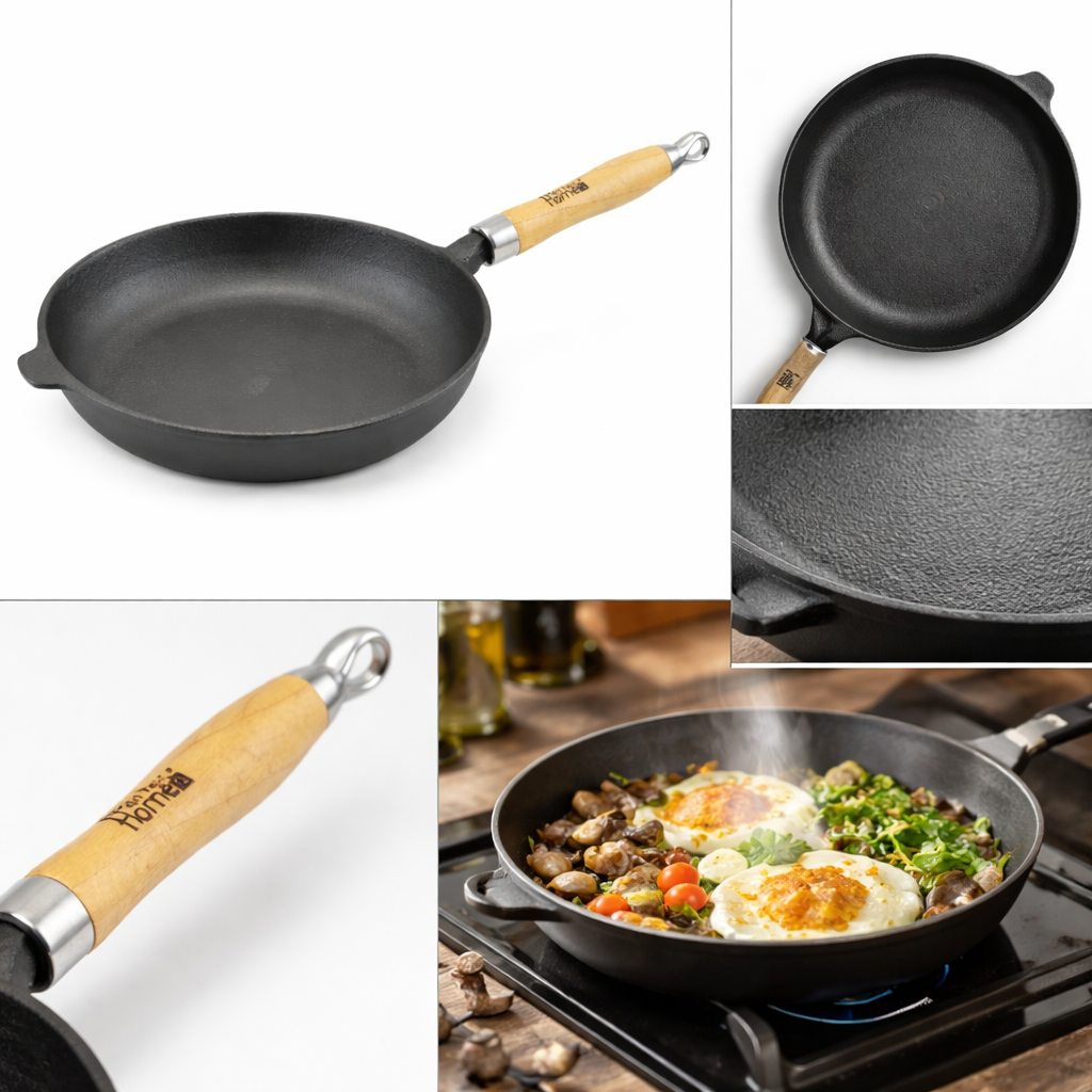 Încălzire graduală și uniformă; fiind un material foarte dens, mâncarea se gătește uniform. Tigaie fontă pură 30 × 5 cm este ideală pentru, plite pe gaz sau electrice, pirostrii, plite tradiționale și plitele cu inducție.