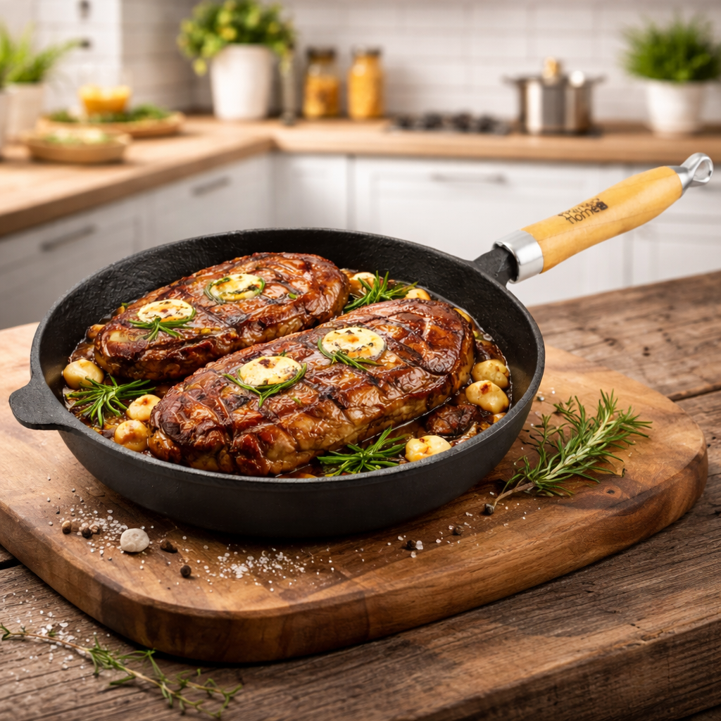 De fiecare dată când gătești într-un vas din fontă pură, uleiul utilizat se infiltrează în pereții vasului și ajută la păstrarea acestuia în condiții optime pentru mai mult timp.