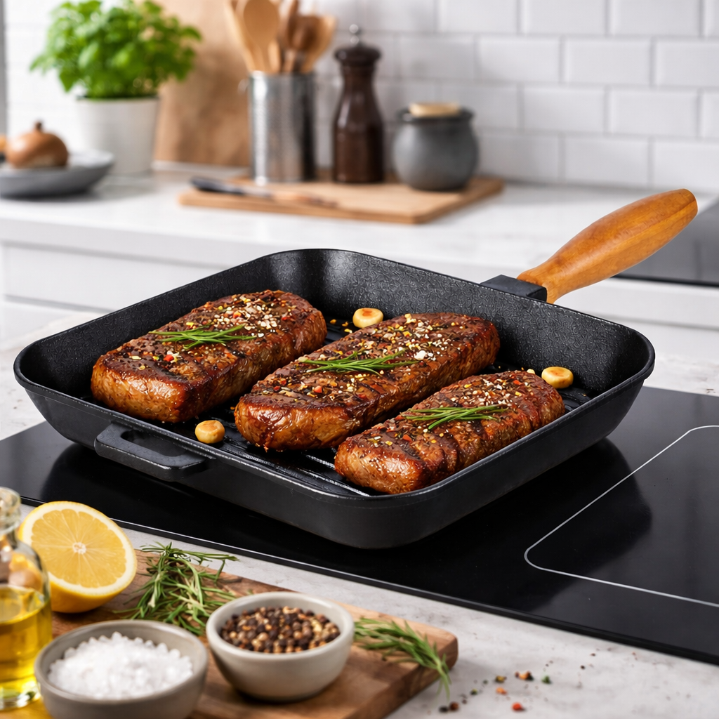 De ce sa gatim pefonta in Tigaie grill fontă 28 cm x 28 cm x 4 cm?