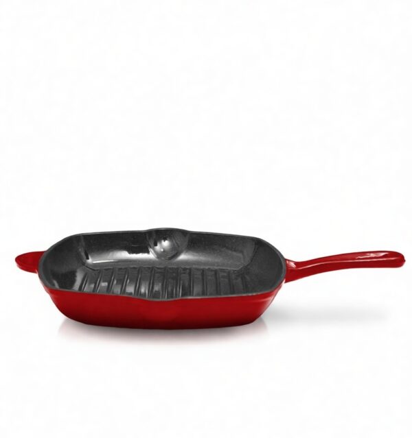 🔥ATENȚIE!!! Tigaie grill fontă emailată 26.5 cm – NU necesită întreținere prin ungere.